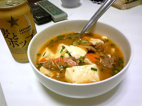 スンドゥブチゲが大好きな私は、よく絹豆腐で「もどき」を作る。